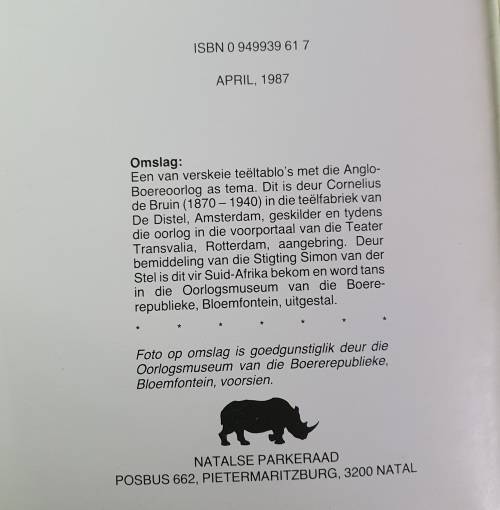ON AUCTION: 1 X DIE SLAG VAN SPIOENKOP. 1987. NATALSE PARKERAAD. TWEETALIG. SAGTE BAND OMSLAG.