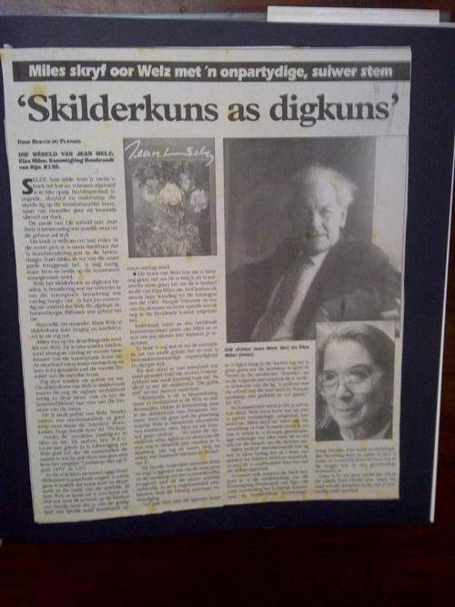 DIE WERELD VAN JEAN WELZ DEUR ELZA MILES.VERSPREI DEUR DIE REMBRANDT-GROEP IN DIE NEGENTIGS.SLUIT IN OORSPRONKLILKE FAKTUUR PLUS UITKNIPSEL VAN DIE OORSPRONKLIKE RESENSIE IN DIE KOERANT.N PRAGTIGE TOEVOEGING VIR DIE VERSAMELAAR.POSGELD R40.