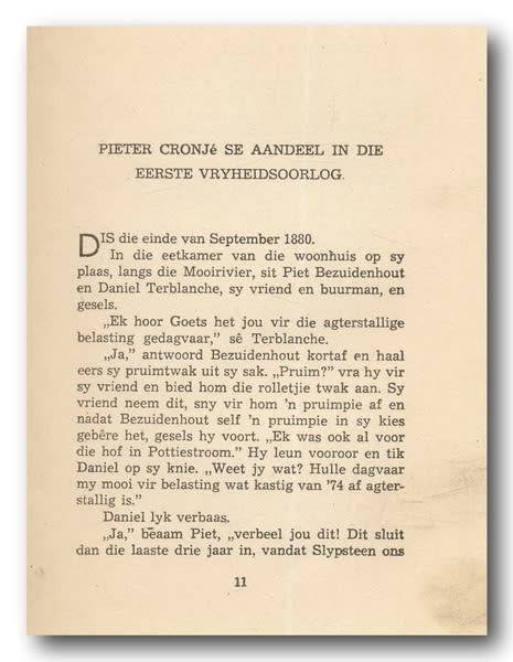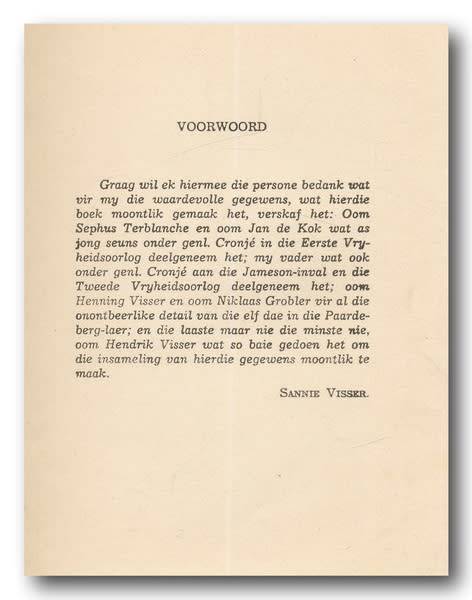Pieter Cronje se aandeel in die eerste Vryheidsoorlog, Speel af in die Vryheidsoorlog. Een hoofstuk is oor Piet Cronje en Paardeberg. Foto van Tom Visser en Sephus Terblanche en ook van Hester Susanna Cronje, Gebore Visser.