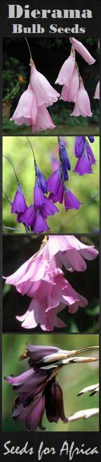 Dierama is a genus in the Iridaceae. Its common names are not stably established, but various species are loosely known by names such as Fairy's Fishing Rods, Fairy's Wands, Fairy Bells, Wedding Bells, Hairbells, Harebells. These refer to the bell-shaped flowers on slender scapes that bend gracefully under the weight of the inflorescences and nod in the wind. The various species and cultivars produce flowers in ranges of colours from white through dark red, some of them with spots of yellow or blue. Growing to 1m with reduced sheathing leaves and pendulous creamy-white to palest yellow flowers with silvery-white bracts in Spring to Autumn. USDA Climate Zone - 8 Season to Sow - Spring This sale is for a 5 seed pack. The final price will be the BUY NOW Price. Click here for different sized packs of this species. Other Fine Brands & Products We Recommend