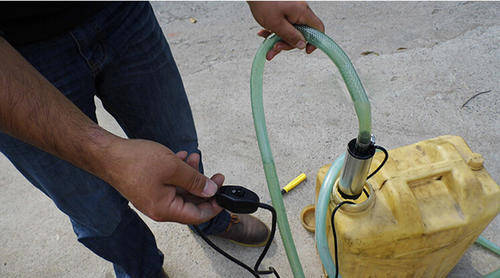 The oil pumps diesel (or water) should be connected owned oil hose, then the pump completely into the clean diesel (or water)