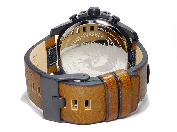 This attractive timepiece is from the Mega Chief collection by Diesel. It is made from black ion-plated steel and has a round 52mm dial. The dial features a special two-tone effect from the crystal glass but the main colour appears orange. The dial features high=-visibility baton hour markers and hands, date function and chronograph. It is powered by a quality quartz movement.