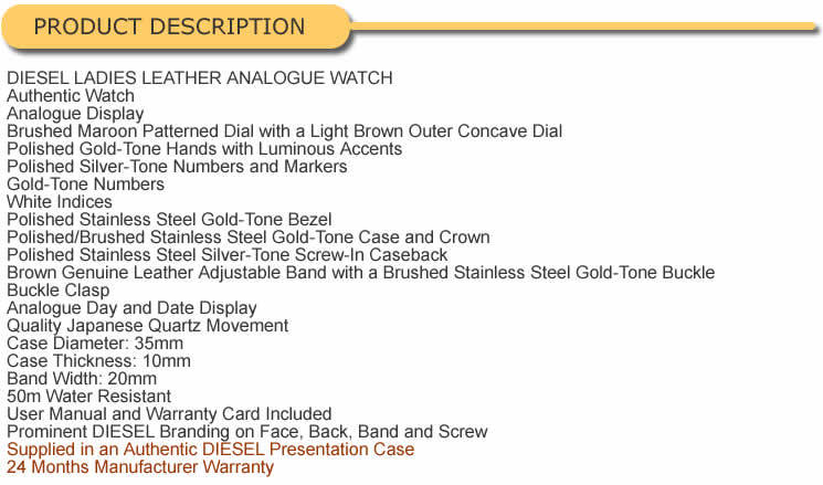 DIESEL LADIES LEATHER ANALOGUE WATCH **BRAND NEW WITH WARRANTY!!!**