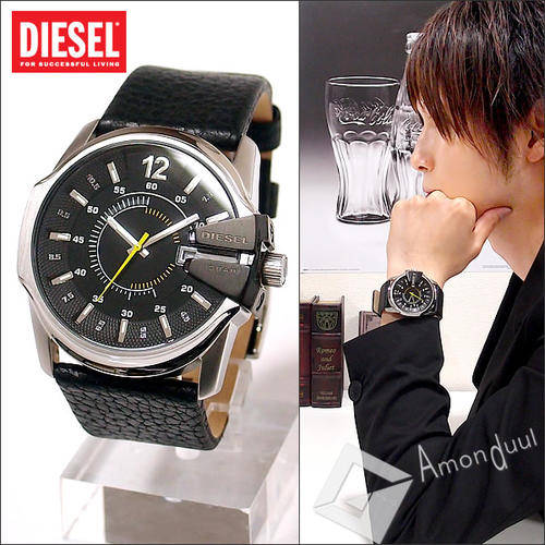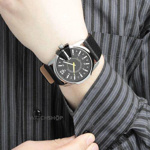 Brand New DIESEL Date Black Leather Gents Quartz Dress Watch