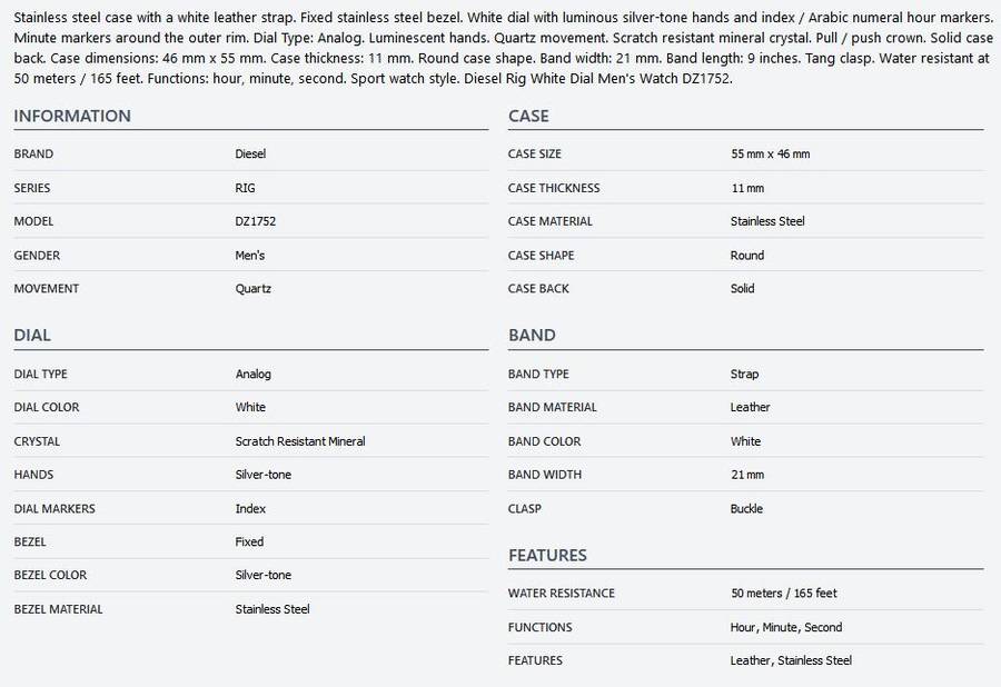 DIESEL RIG STAINLESS STEEL MENS WATCH  (DZ1752)  **VALUE: R5299.00**