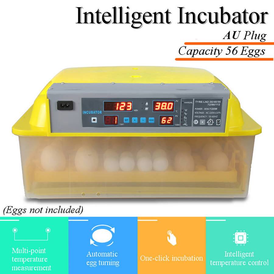 This brand new 56 Egg Digital Incubator is perfect for home use or educational purposes and activities. It can hatch chicken, dove, quail or other little bird eggs. If the egg trays are removed, this incubator is also versatile for hatching fertile duck, goose and peacock eggs!