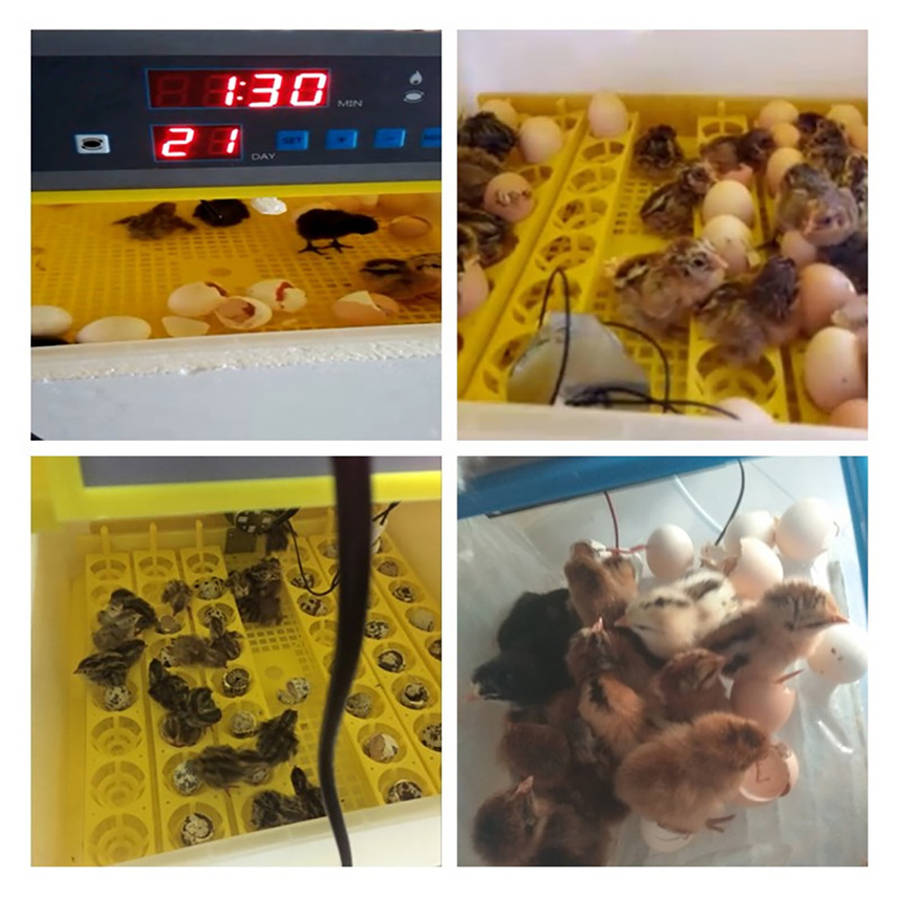LED display shows temperature, humidity, hatching day and egg turning countdown time