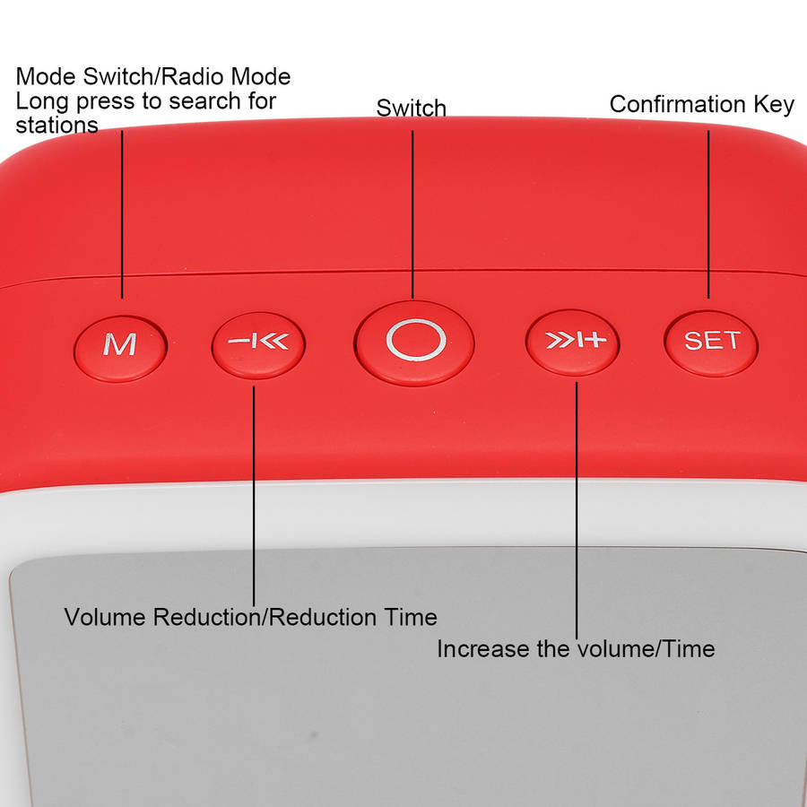 Specifications: Name: LED bluetooth Speaker Color: Black, Red, White, Pink Shell Material: Plastic Type: bluetooth Speaker Connection Method: bluetooth Connection bluetooth 5.0: Support Battery: 3.7V 1200mAh Lithium Battery Frequency Response Range: 100Hz-20kHz Output Power: 3W Signal to Noise Ratio: a75dB Channel: 2 Playing Time: 6h Expansion Storage: 32GB Effective Distance: 10m Play Format: MP3, WMA, WAV, PLAC Display Mode: LED Digital Display Support Format: TF Card, Micro USB Power Supply Mode: USB Wireless Frequency Band: ISM: 2.402-2.480GHz FM: 76-108MHz Size: 10.3*8.1*7cm/4.06*3.19*2.76in Packing Size: 11*10*8cm/4.33*3.94*3.15in Weight: 320g