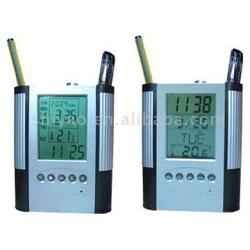 DIGITAL CLOCK WITH CALENDAR, TEMPERATURE AND PEN HOLDER