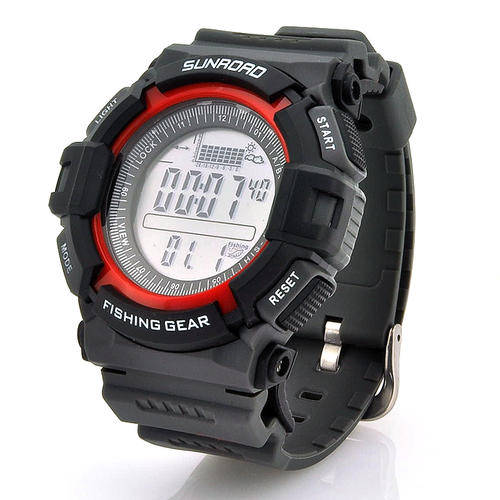 Digital Fishing Barometer Watch has been especially designed for fishing professionals and amateurs with built-in precision tools such as an Altimeter, Thermometer, Weather Forecasting, a smart alarm to notify you of perfect fishing conditions, tracking of up to six locations, as well as being a normal waterproof watch.