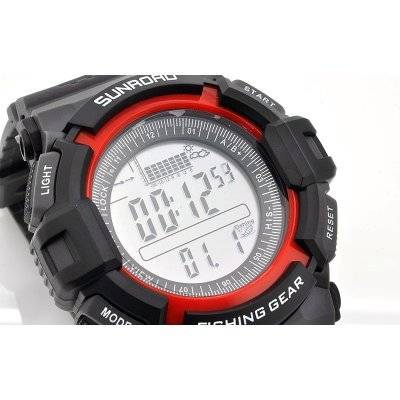 Summary The Digital Fishing Barometer Watch has been especially designed for fishing professionals and amateurs with built-in precision tools such as an Altimeter, Thermometer, Weather Forecasting, a smart alarm to notify you of perfect fishing conditions, tracking of up to six locations, as well as being a normal waterproof watch. With this watch, you will be able to monitor the atmospheric pressure easily, as knowing this will allow you to adapt to the feeding behavior of the fish. For example, when a cold front is building up the fish will be more eager to bite and thus you’ll catch more of them. When the barometer is low, the bite is off, as the fish will spend most of their efforts on equalizing their air bladder and pay less attention to eating. However, when the pressure is high the chances for catching fish are far greater. The watch can also display a 24 hour barometric pressure trend chart and a smart alarm that can automatically notify you when the perfect atmospheric pressure has been reached at a fishing place.