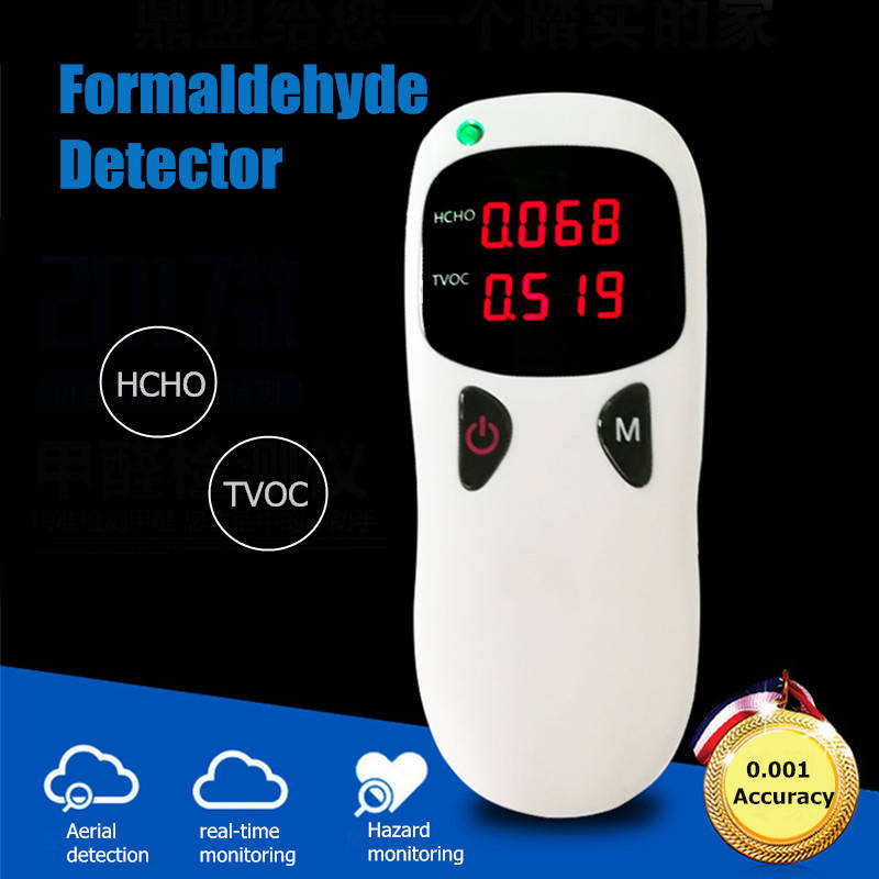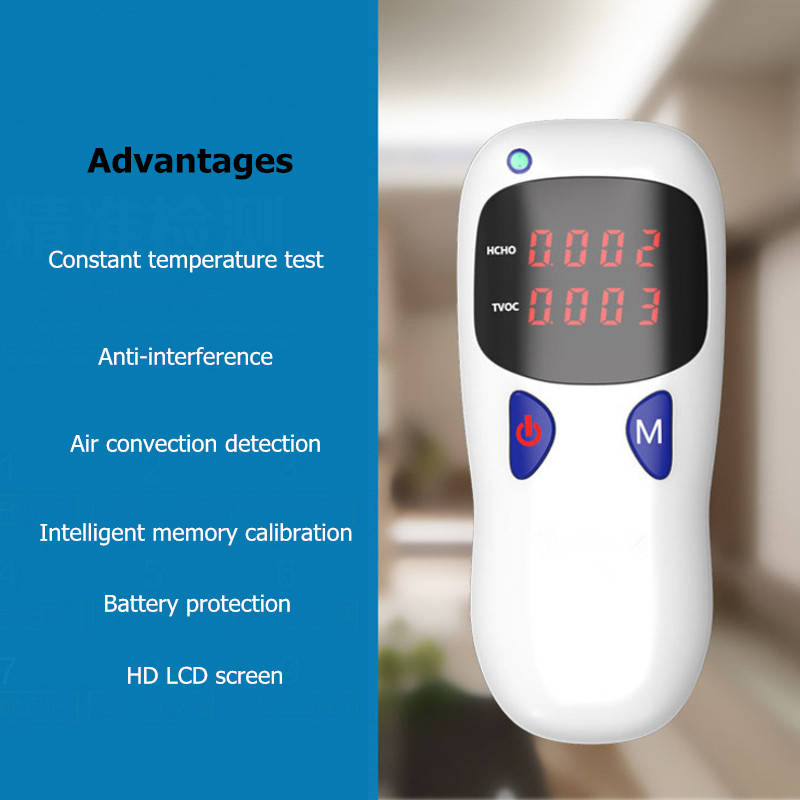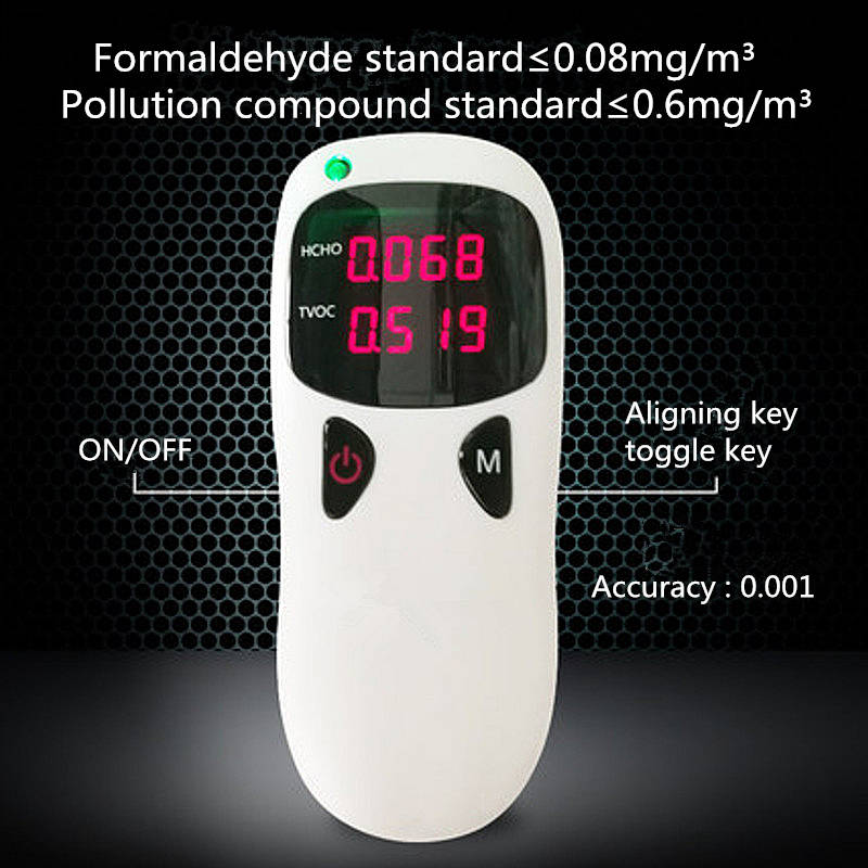 Surveillance project: Formaldehyde and benzene Detection Principle: semiconductor sensor Test range: 0.000~1.999mg/m3 (formaldehyde) 0.000~9.999mg/m3 (TVOC) Display mode: HD LCD Display screen Temperature:- 20a~70a Battery: 2 x AA Batteries (NOT included) Working voltage: 2.4~3V Net weight: 150g Packge included: