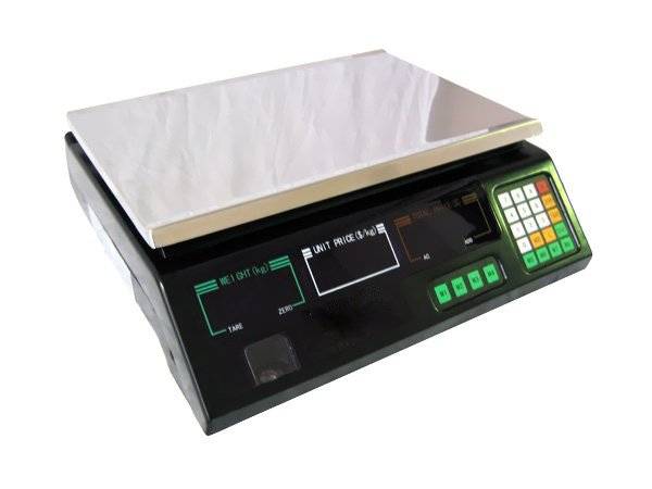This is an all Stainless Steel construction (Weight platform) AC/DC Price Computing Scale. The Stainless Steel Construction makes clean-up simple and easy. It has 3 LCD displays on the Operator's side of the scale as well as 3 LCD displays on the Customer's side. The Electronic price scale has 8 direct access memory keys. Also included is a rechargeable battery and with an AC Adapter.