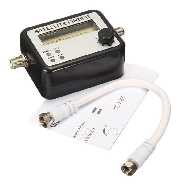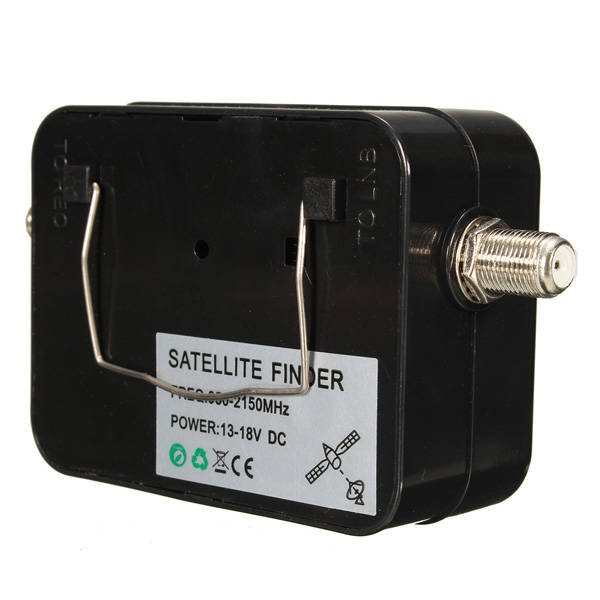 1. Input frequency: 950-2150 MHz 2. Min. input level: - 40dBm 3. Maximum input level: - 10dBm 4. Input impedance: 75 Ohm F-connector 5. Output impedance: 75 Ohm, F Connenctor 6. Betriebgsbereich: 52 - 60dB 7. Power supply: DC 13-18V 8. Dimensions: 108 x 60 x 44 mm Working process: 1. Switch the receiver on. The digital sat turns on automatically. 2. Roughly align your incorrect on the desired satellite. 3. The SAT has a variety of signal strength 0% display (critical point) 4. Move the dish slightly vertically and horizontally. The higher the scale value of Satfinders, the better the satellite signal. The scale indicates the highest value, you can classify the signal into a smaller level button with the "ATT". Repeat the move of the dish until the maximum value is shown again and a highest buzzer sounds. 5. Check you have found on your TV device, whether the right satellite. 6. Remove the cables on the sat and again connect the LNB to the receiver. Notes: To avoid the full beating out the needle, you put the SAT does not directly in front of the bowl. Please use a 5 dB attenuator, if you use an LNB (such as E.g. high gain) with more than 60dB. If you have no satellite receiver on hand, you can connect a 13-18V DC power supply with a F-plug at the connection socket of the receiver, to take the sat in operation.