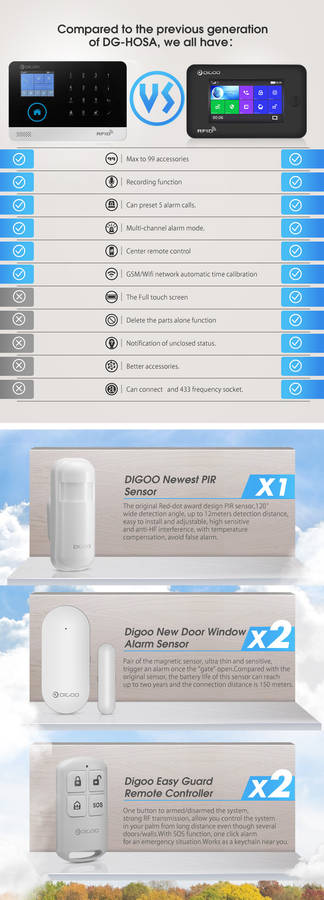 | Model | DG-HAMA Wireless GSM&WIFI DIY Smart Home Security Alarm System Kits |