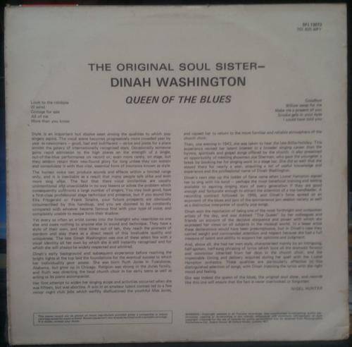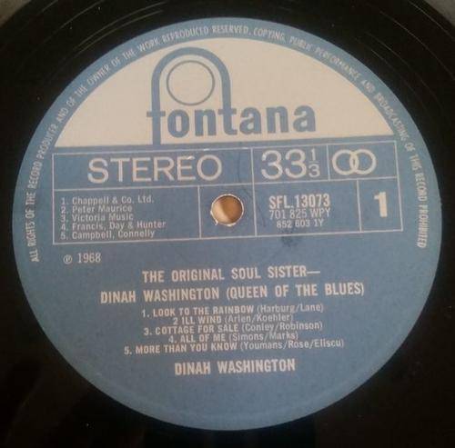 DINAH WASHINGTON ~ The Original Soul Sister - Queen Of The Blues (LP) UK Fontana 1968