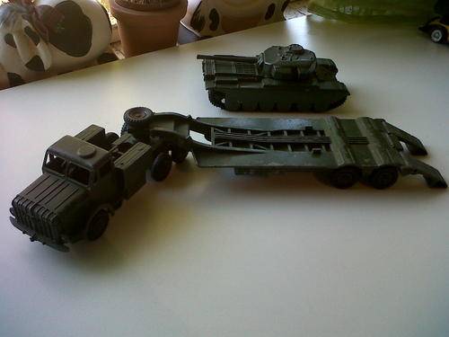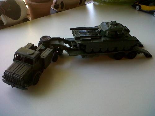 On auction is the DINKY SUPERTOYS THORNYCROFT MIGHTY ANTAR 660 TANK TRANSPORTER WITH DINKY SUPERTOYS 651 CENTURION TANK ***MADE IN ENGLAND BY MECCANO LTD*** (ABOUT 340mm).
