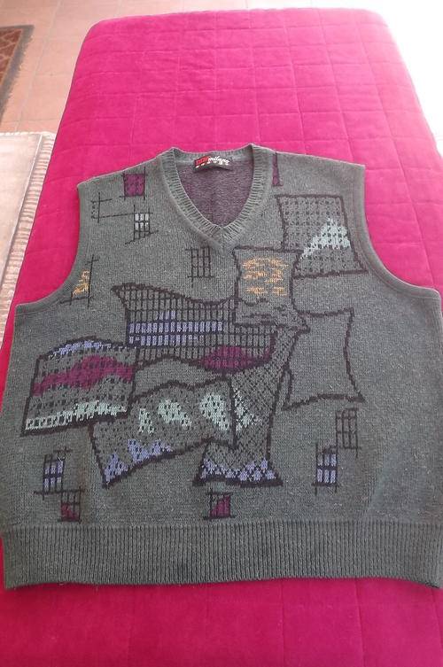 Dino Milano Men's knitted Pullover in dark green with graphic pattern in size large chest 119cm