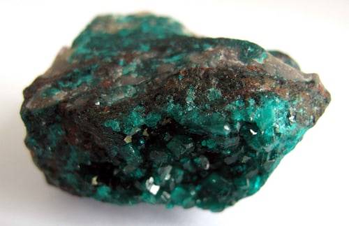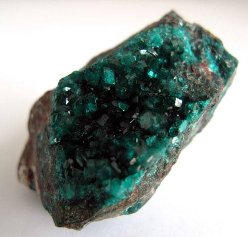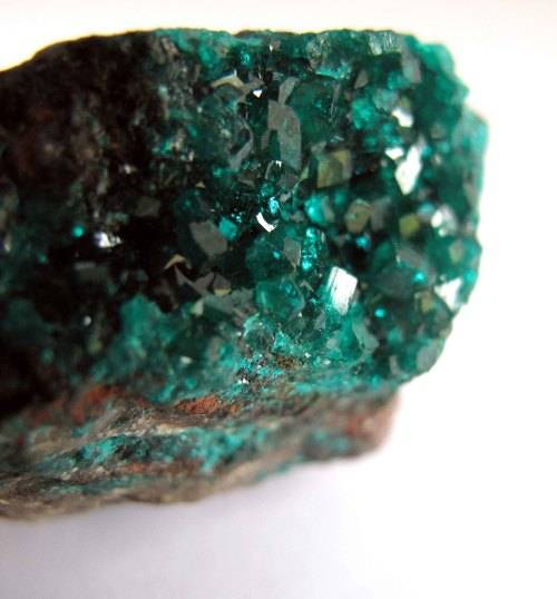 Description: A cluster of highly lustrous and gemmy emerald green dioptase on a matrix from this know closed mine.
