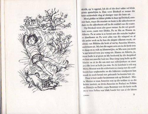 Hardeband boek sonder stofjas. Ex Bib boek in 'n redelike toestand met hier en daar potloodaantekeninge. Geel kleeflintmerke teenwoordig en bladsy 7 herstel met kleeflint. Oulike pen sketse deurgaans in die boek.