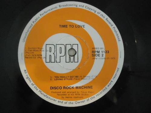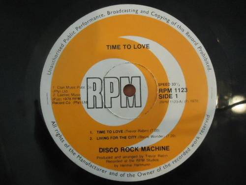 On offer is this DISCO ROCK MACHINE "A TIME TO LOVE" - 1978 RPM STEREO LP IN V/GOOD CONDITION