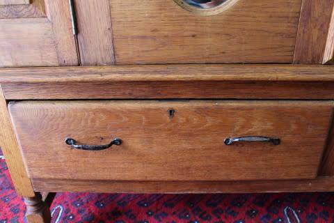 This amazing vintage Oak two-door, two division wardrobe with two large drwers and "full-length" bevelled glass mirrors has ample space for hanging and packing. The wardrobe does not have shelves or locks on the doors. The wardrobe would also make a perfect linen cupboard, grocery cupboard or even a drinks cupboard with shelves across the two divisions. The wardrobe measures 158cm long x 56cm deep x 204cm high and is in lovely condition for its age, with minimal/ normal vintage age and usage related wear and tear. Please view the pics carefully to fully appreciate this gorgeous vintage two-door wardrobe and to confirm the condition.