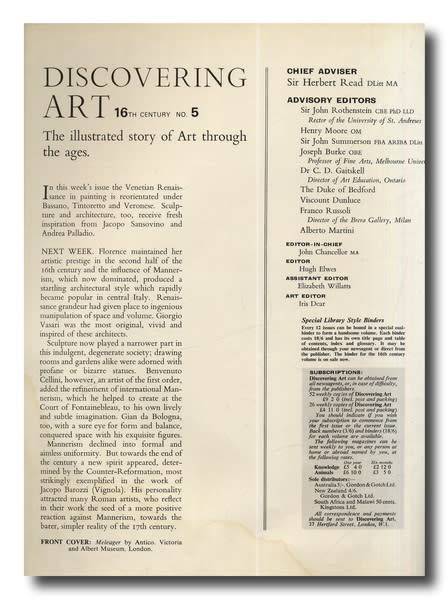 Discovering Art (16th Century No 5). A4, Staple Book, 65-81 pages. Cover worn - right botom corner torn . Book inside in readable condition. Light fluid damage.