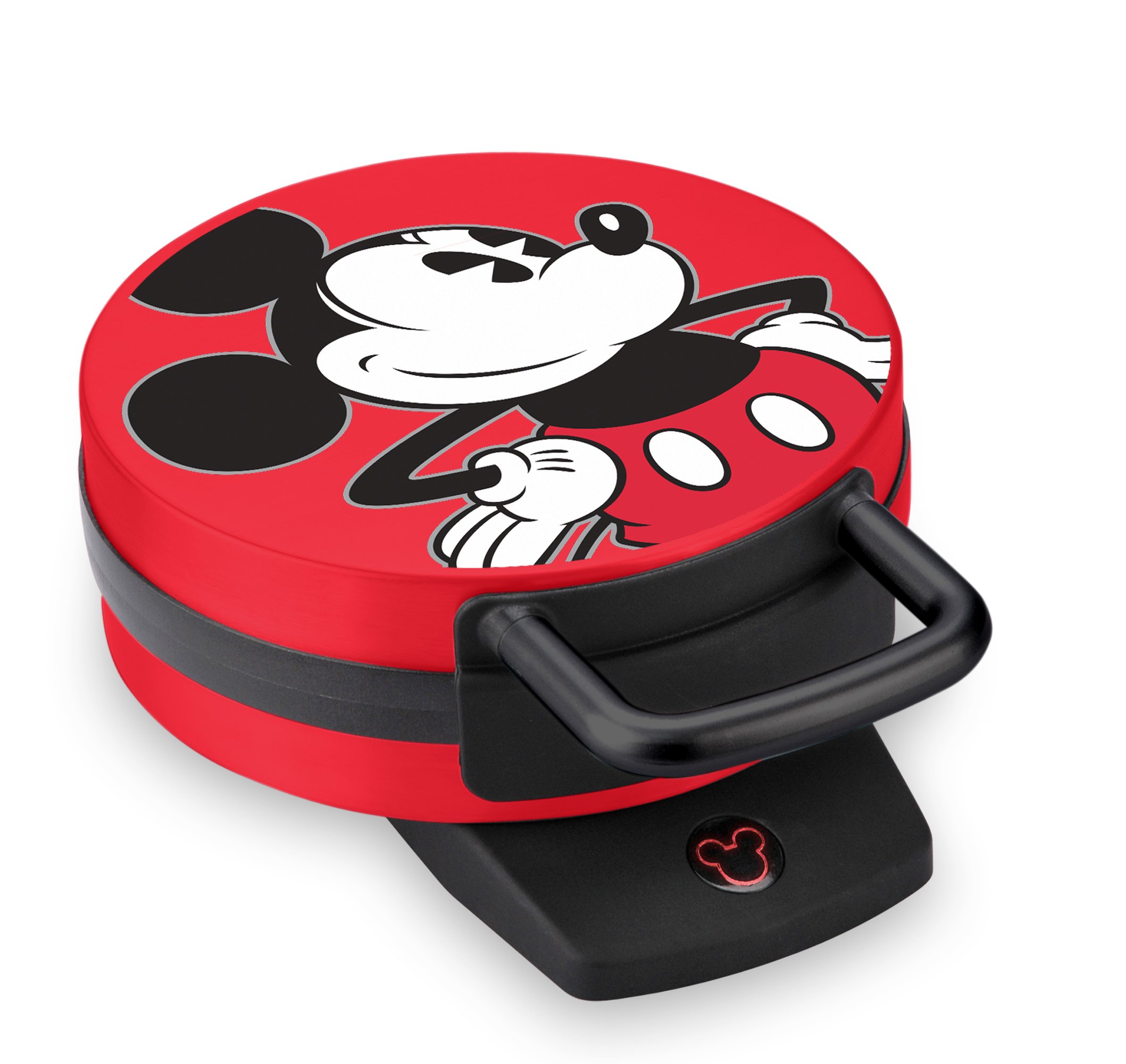 Style Name:Mickey Mouse Start your day off with a smile with this fun MickeyMouse Waffle Maker. Bake a large golden brown Mickey shaped waffle (6"approximate diameter) in just minutes. Everything about this product will makeyou grin, right down to the easy-clean nonstick coated cooking surface. BakesOne 6" Mickey Mouse character waffle. Illuminated Mickey power light. Nonstickcooking plates. Non-skid rubber feet. 800 Watts.