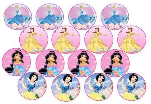 1 x A4 Sheet with 16 Disney princesses cupcake circles (print will look like the picture below, there are 16 cupcake circles per sheet) - all pictures and or cupcake pictures are printed on wafer/ rice paper