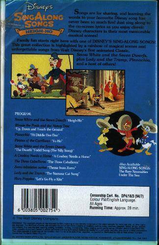 Disney Sing Along Songs - Heigh-Ho VHS Video