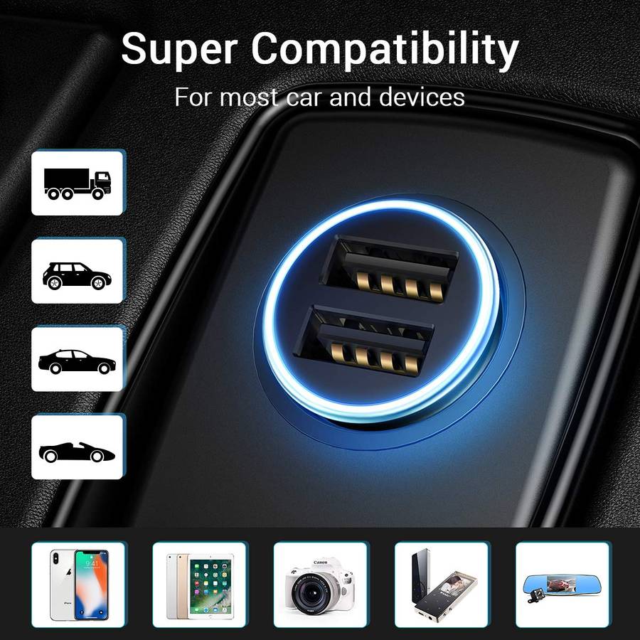 DIVI Dual USB Car Charger Adapter LED Indicator Fast Charging For iPhone 12 XS