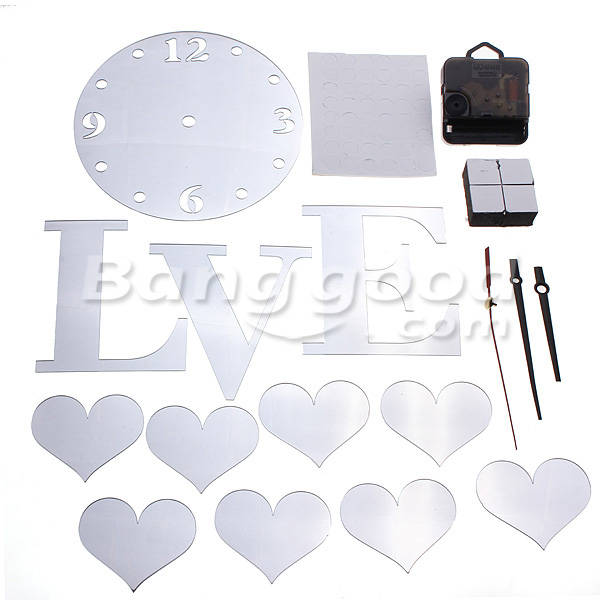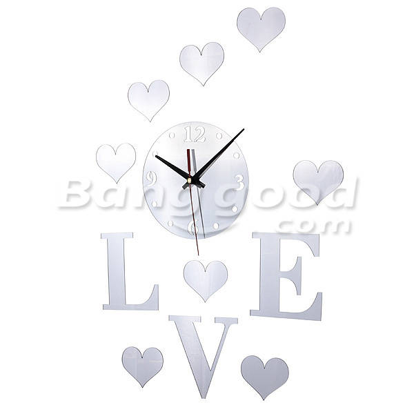 DIY 3D Home Modern Love Wall Clock Decor Mirror Living Room
