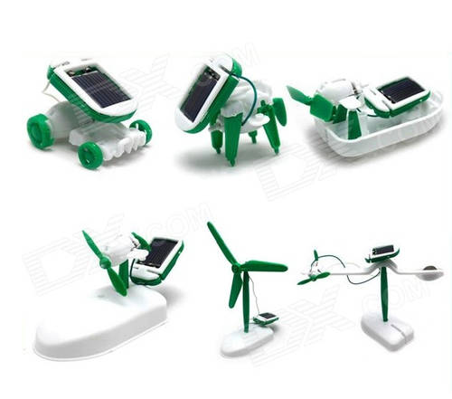 DIY 6-in-1 Solar Powered Educational Assembly Model Toy - White + Green