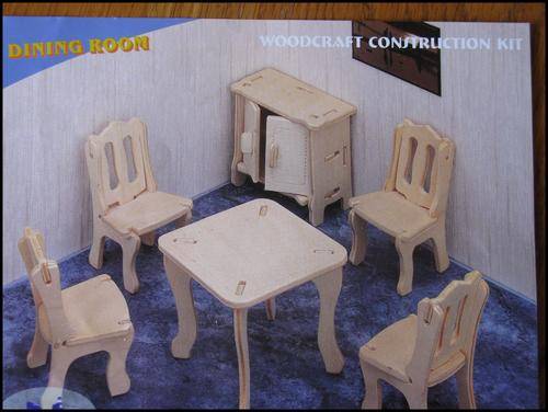 A cute set of dining room furniture for a doll's house - assemble it yourself and get the 'lady of the manor' to help paint and decorate it.