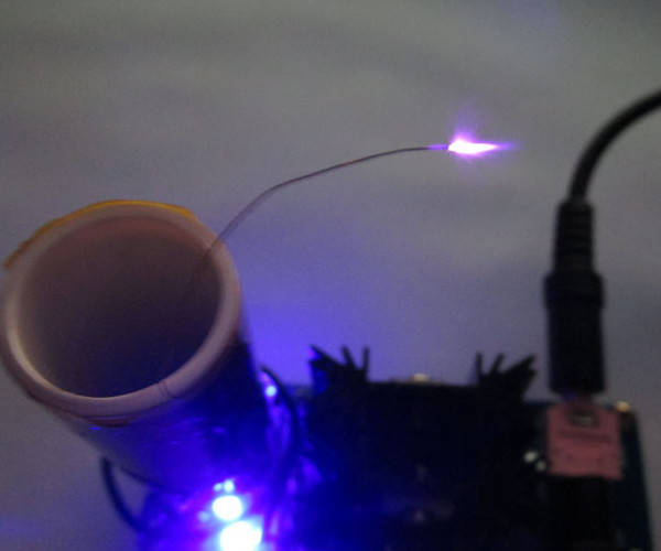 Feature: On the basis of ordinary tesla, added a music playback function: A new concept loudspeaker for generating acoustic vibrations of air generated by an arc excited air! Can play mobile / computer music, the sound quality is clear. Voltage input 15-24V DC, when arc length 24V, 5 - 10 mm meters is the most ideal, small size, can work uninterruptedly for a long time, but also can light up the LED from a distance, foam energy-saving lamp, flash tube, can play radio transmission, rotating arc etc..
