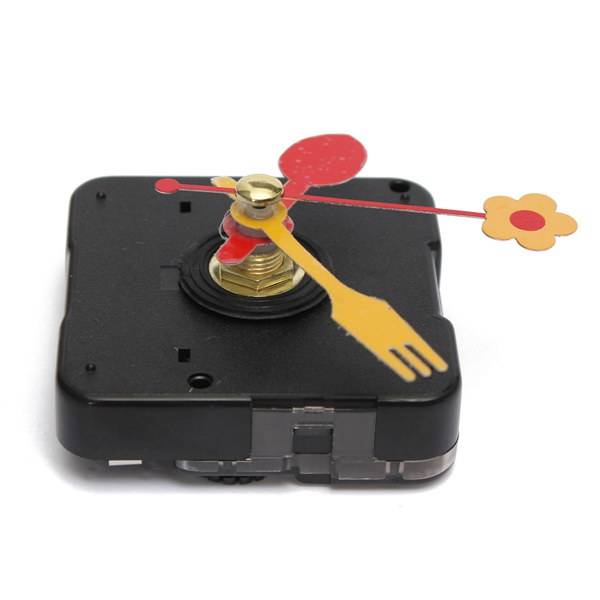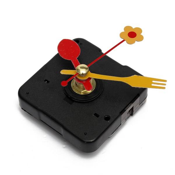 DIY Quartz Clock Wall Movement Mechanism Repair Part Kit Size: Case size: 5.5 x 5.5 x 1.5cm / 2.2 x 2.2 x 0.6 inch(approx) Hour hand working radius: 31mm / 1.2 inch Minute hand working radius: 46mm / 1.8 inch Second hand working radius: 45mm / 1.8 inch Hour hand total length: 41mm / 1.6 inch Minute hand total length: 58 / 2.3 inch Second hand total length: 60mm / 2.4 inch Thread length: 6mm / 0.24 inch Features: Durable Spoon Shape Hour Hand Fork Shape Minute Hand Flower Shape Second Hand Easy and Simple Design Easy to make a clock A Perfect Replacement Material: Plastic and Metal Package included: 1 x DIY Clock Movement Kit