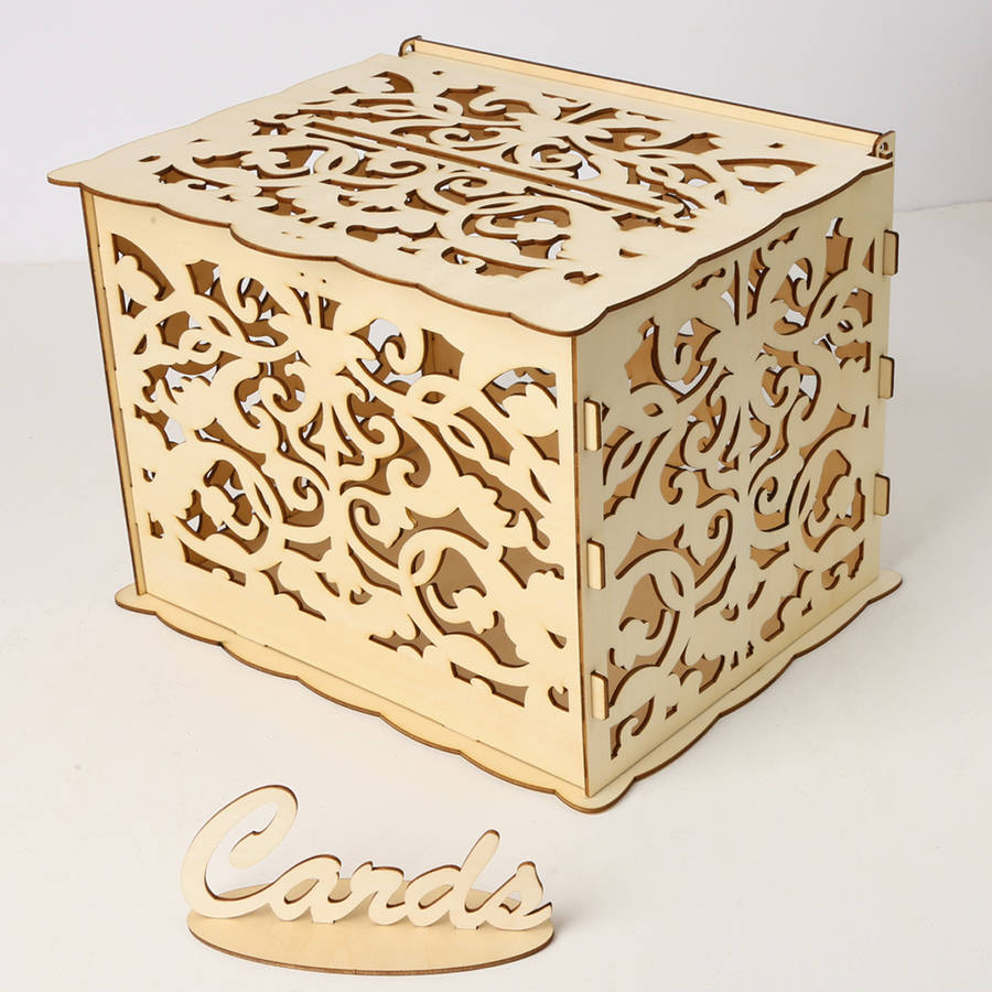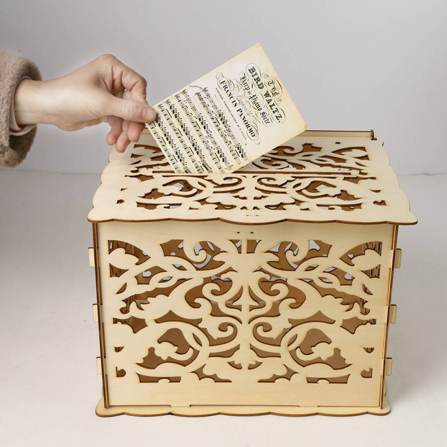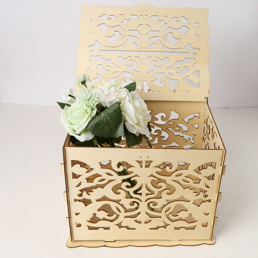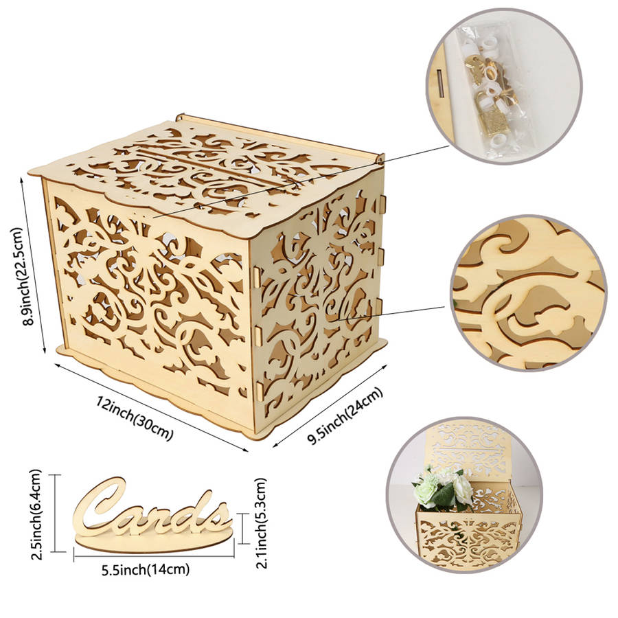 DIY Wedding Gift Card Box Wooden Money Box with Lock Beautiful Wedding Decoration Supplies for Birthday Party