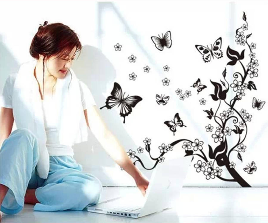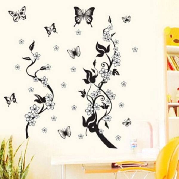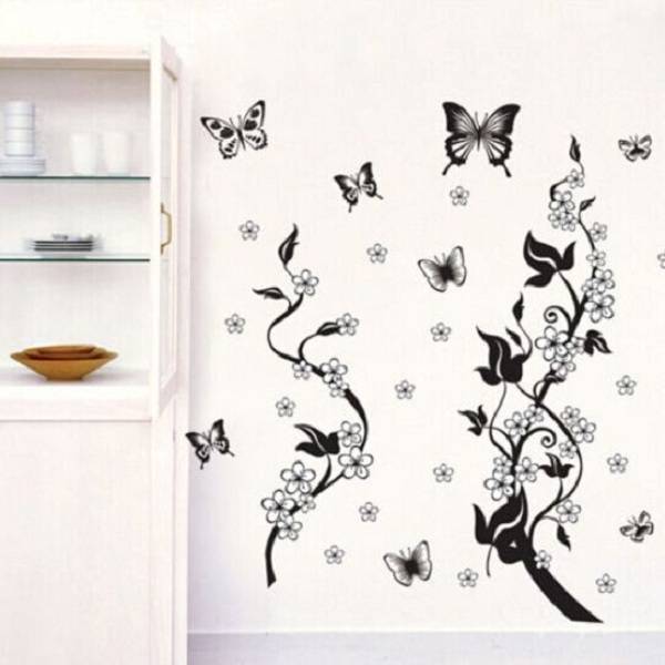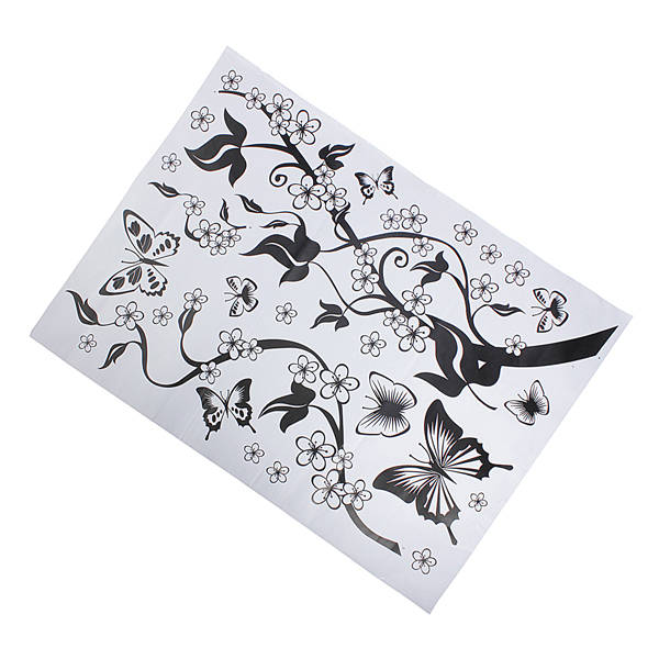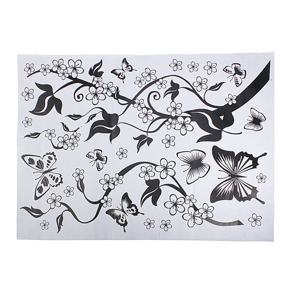 Description: DIY Wall Stickers Home Decor Flowers Butterfly Removable Wall Paper Stickers Art Specification: Material: PVC Color: Black and white Size: App. 50cmX70cm Max. Butterfly: App.15cm X15cm Package includes: 1 x Wall Sticker