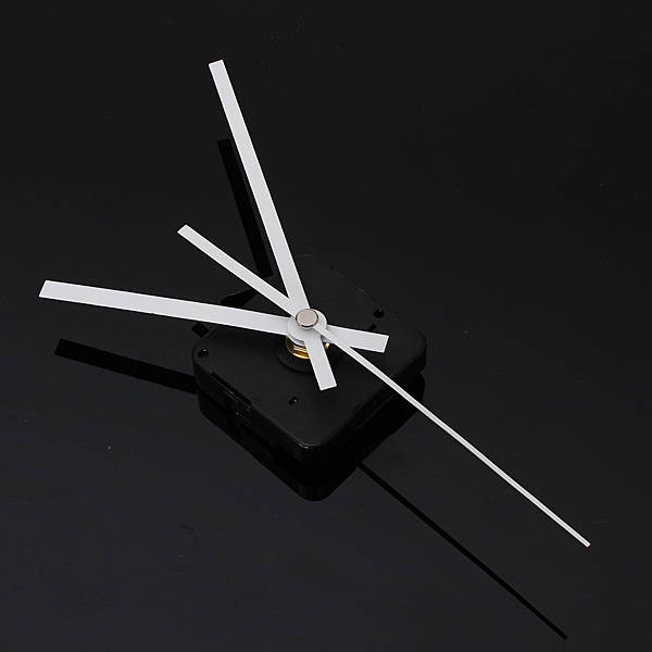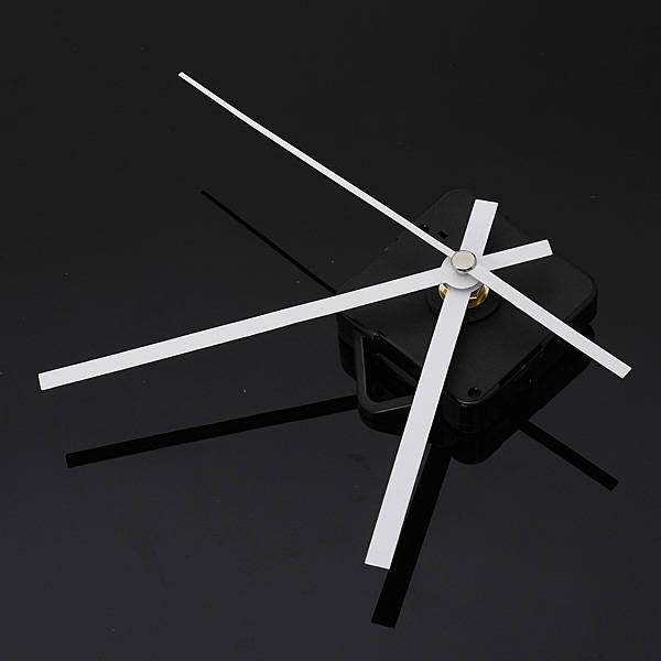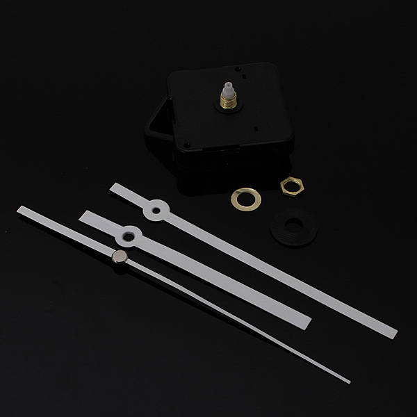 DIY White Hands Silent Quartz Movement Mechanism Wall Clock Specification: Material: Plastic + Aluminum Color: White Hands / Black Case (As the picture showed) Power: 1.5V AA battery (not included) Dimension: Case size: Approx.55 x 55 x 16 mm Hour hand length: Approx. 114 mm Minute hand length: Approx. 143 mm Second hand length: Approx. 165 mm Movement thickness: 3cm Features: Quiet silent mode Easy and simple design Great for repairing, replacing or making a clock Package included: