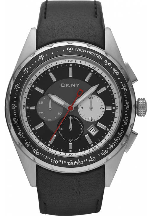 DKNY BLACK LEATHER CHRONOGRAPH MENS WATCH
