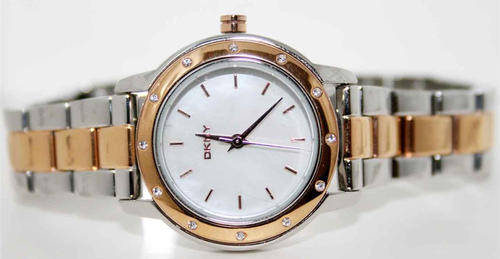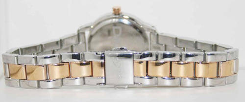 The stainless steel strap is a combination of Rose Gold coloring through the middle and silver coloring on the outside.