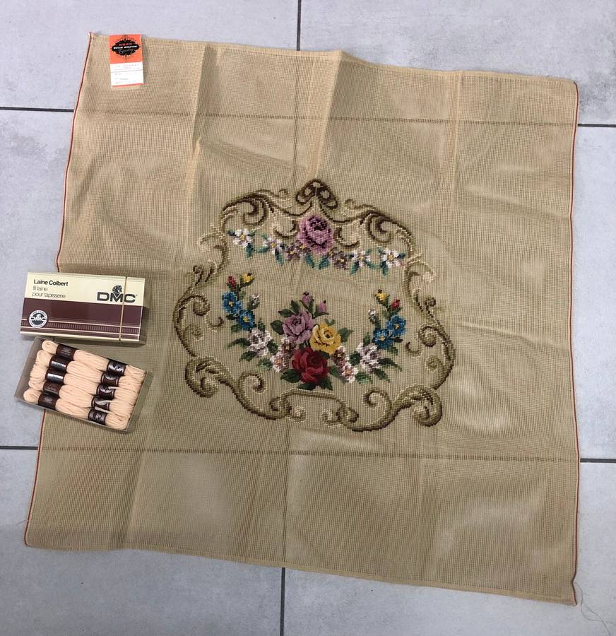 Woolen Needlepoint Tapestry unfinished but enough Tapestry Wool to complete tapestry