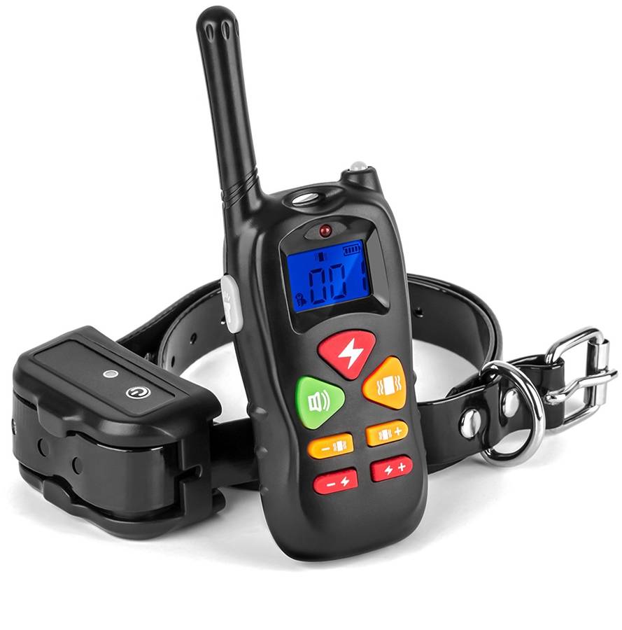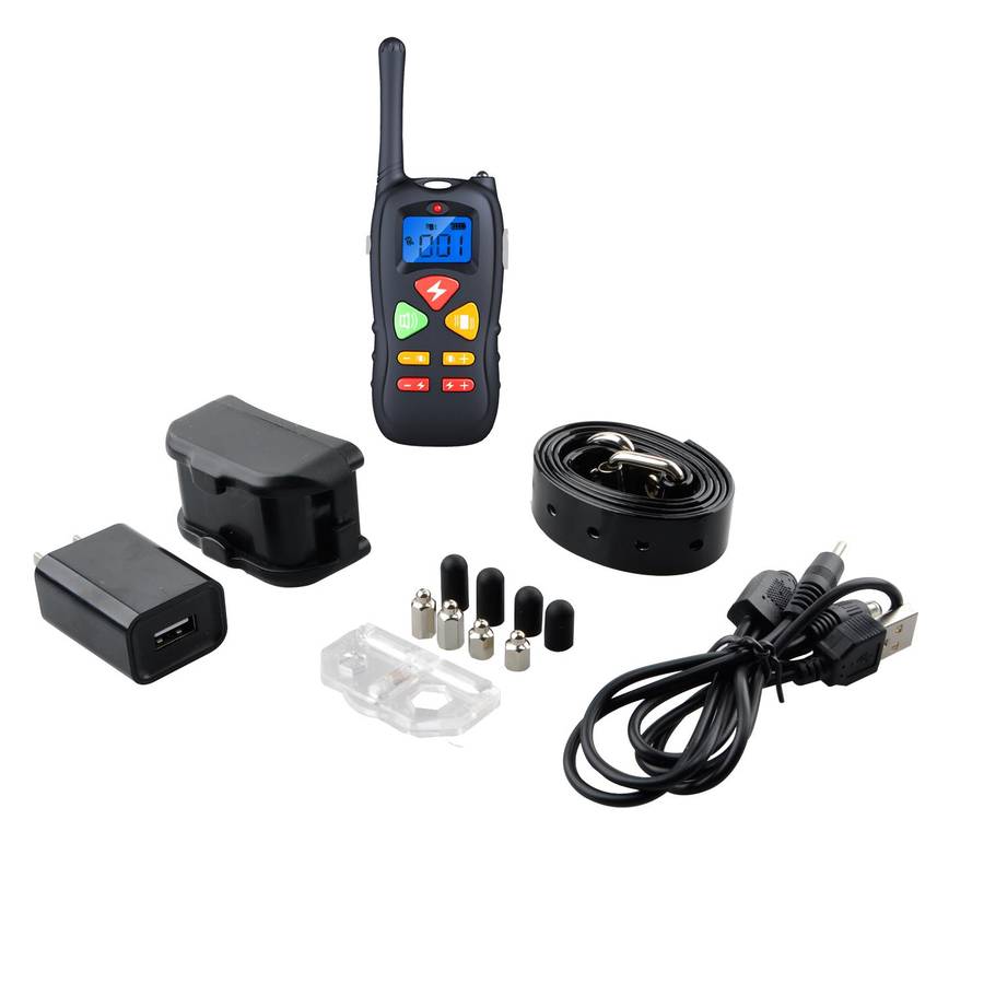 Features: Range: Up to 330 Yards Water Capabilities: IP67 waterproof Tone/Vibration Options: 100 Levels of Vibration and 1 Level of Standard Tone Shock Levels: 100 Levels of Static Shock Battery Type: Rechargeable Lithium Batteries, charge at the same time Easy to operate and ergonomic Transmitter LCD Display for nighttime usage Light Mode to assist seeing dog in low light conditions
