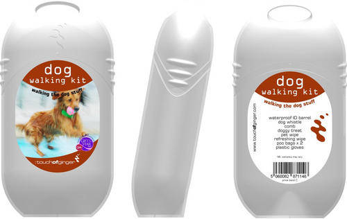 The Dog Walking Kit is a pocket sized capsule of canine goodies designed to go with you and your "buddy" on walkies.