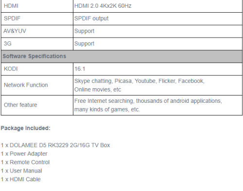 Dolamee D5 TV Box Rockchip 3229 Quad Core