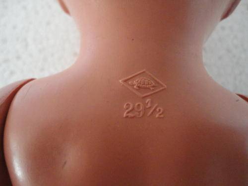 Celluloid doll 29cm tall and in excellent condition. This is a German Schildkrot doll and was made during the late 1940's early 1950's and is marked with a Turtle logo and number.