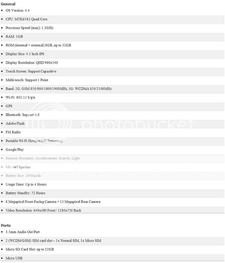 DOOGEE DG800 Valenica SmartPhone - 4.5" 960 x 540 IPS Screen Android 4.4 OS 3G Dual SIM GPS Phone Quad Core 1.3G CPU