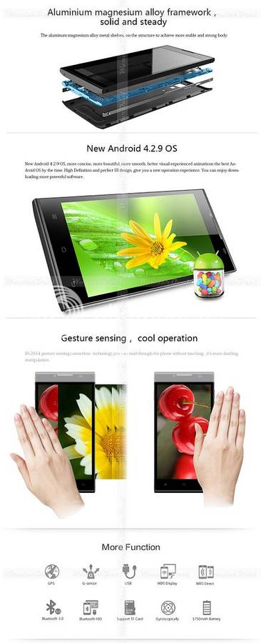 5 Inch HD 1280x720 OGS IPS Screen/ Android 4.2.9 / 3G Dual SIM Standby / GPS / 1.3G Quad Core CPU