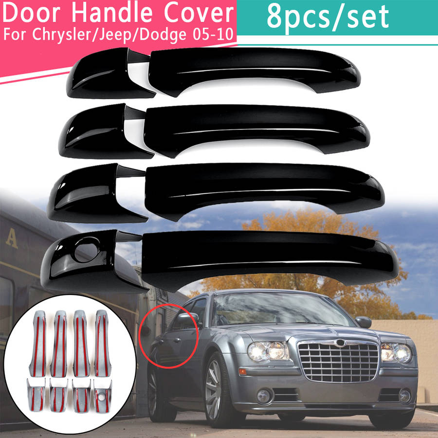 8pcs Set Door Handle Cover Gloss Black W/O Passenger Keyhole For Chrysler/Jeep/Dodge 05-10