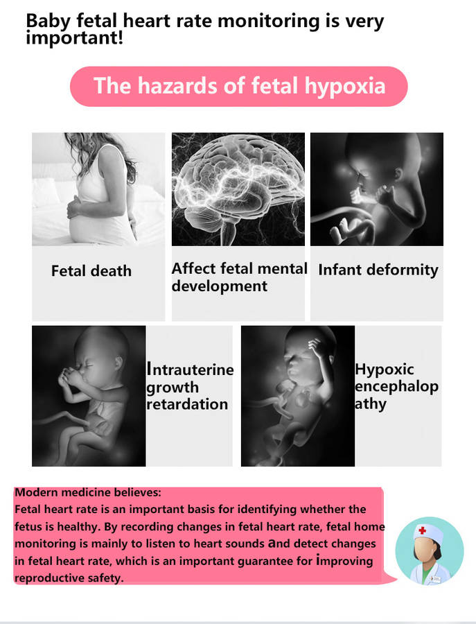 3. High Sensitivity: Medical grade, high sensitivity waterproof probe , no radiation to detect,low ultrasound power, safer to the fetus